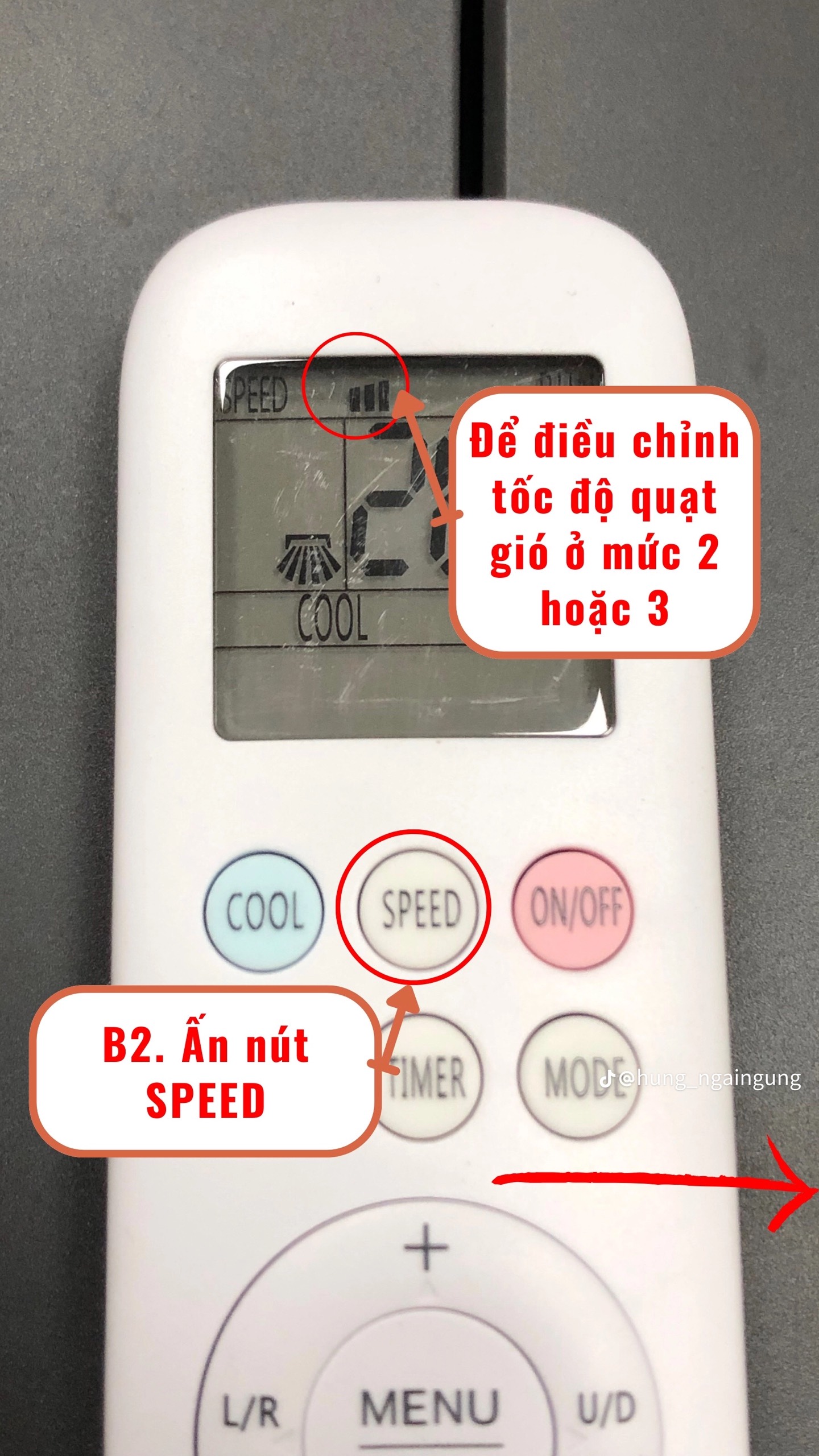 1.Sau khi căn phòng mát thì chỉnh chế độ quạt mức 2 hoặc 3