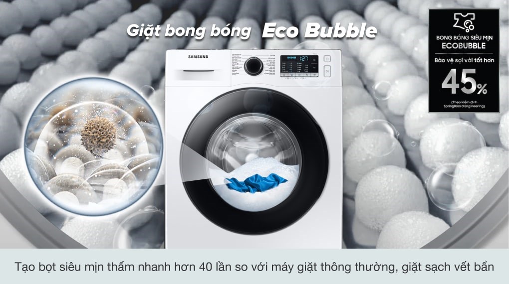 Công nghệ EcoBubble kích hoạt bọt xà phòng ngay cả trong nước lạnh, loại bỏ các vết bẩn cứng đầu và bảo vệ sợi vải. Steam Clean giúp làm sạch và khử mùi hôi, mang lại cảm giác sảng khoái cho quần áo.